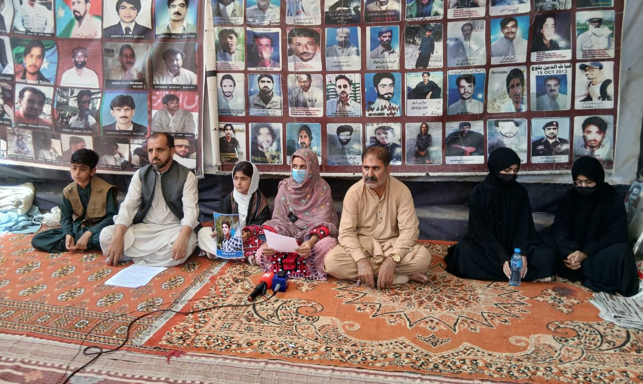 جبری لاپتہ ایمل کے والدہ ماہ جبین نے اپنے شوہر اورنگزیب، بیٹی فاطمہ اور وائس فار بلوچ مسنگ پرسنز کے چیرمین نصراللہ بلوچ کے ہمراہ لاپتہ افراد کی بازیابی کیلئے احتجاجی کیمپ میں پریس کانفرنس کرتے ہوئے کہا کہ میں آج ایک ماں کی حیثیت سے آپ سب کے سامنے کھڑی ہوں، دل میں ایک ایسا درد لیے جو لفظوں میں بیان نہیں ہو سکتا۔ میری گود کا چراغ، میرا بیٹا، ایمل ولد اورنگزیب، جو ایک عام طالبعلم تھا، اسے 23 مئی کی رات ریاستی اداروں کے اہلکار گھر سے اغوا کر کے لے گئے۔