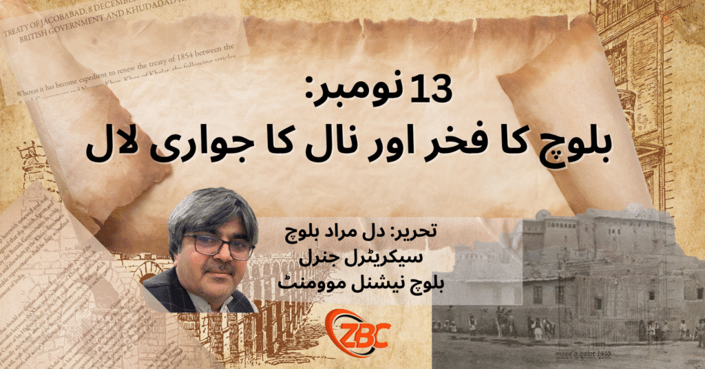 تیرہ نومبر 1839 بلوچ تاریخ کا وہ دن ہے جس نے ایک ریاست کا زوال نہیں، بلکہ ایک قوم کا اخلاقی عروج ثبت کیا۔ قلات کی سرزمین پر مہراب خان نے تلوار کے ساتھ اپنی وفاداری کی آخری حق ادا کی مگر اسی مٹی پر ایک اور شخص بھی گرا تھا، دیوان بچومل، درباری وزیر، وہ بلوچ کے اکثریتی مذہب سے تعلق تو نہیں رکھتا تھا لیکن سرزمین کے لیے مرنا اپنا فریضہ سمجھا، وہ مہراب خان کے ساتھ مر کر زندہ ہوگیا، مگر بلوچ اجتماعی یاد میں دھیرے دھیرے مٹ گیا۔ کیوں مٹ گیا، اس لیے بچو مل کے بعد ہمیں غیرمسلم بلوچوں کے مزاحمتی کردار نظر نہیں آتے ہیں، درمیان میں دو سو سال گزر چکے ہیں۔ آج جب ہم مہراب خان کو یاد کرتے ہیں، تو بچومل کی یاد خاموشی میں کہیں پسِ منظر میں دَب جاتی ہے جیسے ہم نے اس کی قربانی نہیں، صرف اس کا مذہب یاد رکھا ہو۔