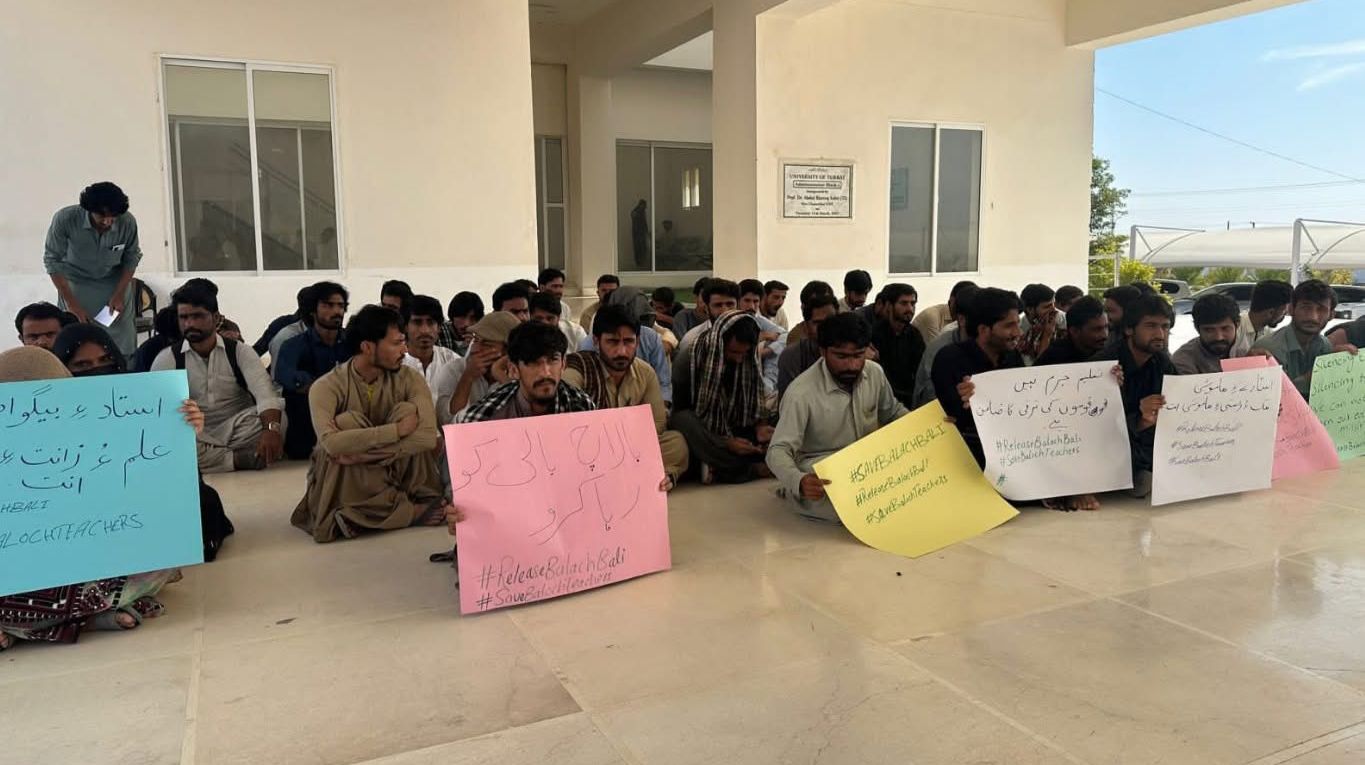 یونیورسٹی آف تربت کے طلبا و اساتذہ نے کمپیوٹر سائنس کے لیکچرار بالاچ بالی کی جبری گمشدگی کے خلاف یونیورسٹی کے احاطے میں احتجاجی مظاہرہ کیا ہے۔