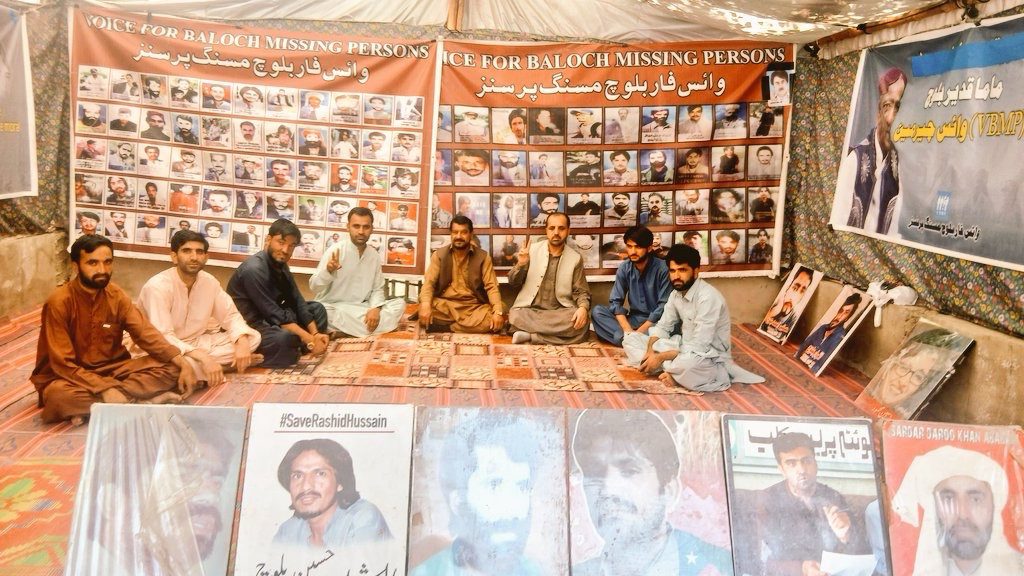 کوئٹہ میں جبری گمشدگیوں کے خلاف وائس فار بلوچ مسنگ پرسنز (وی بی ایم پی) کے زیر اہتمام کوئٹہ پریس کلب کے سامنے قائم احتجاجی کیمپ 6144ویں روز بھی جاری رہا۔
